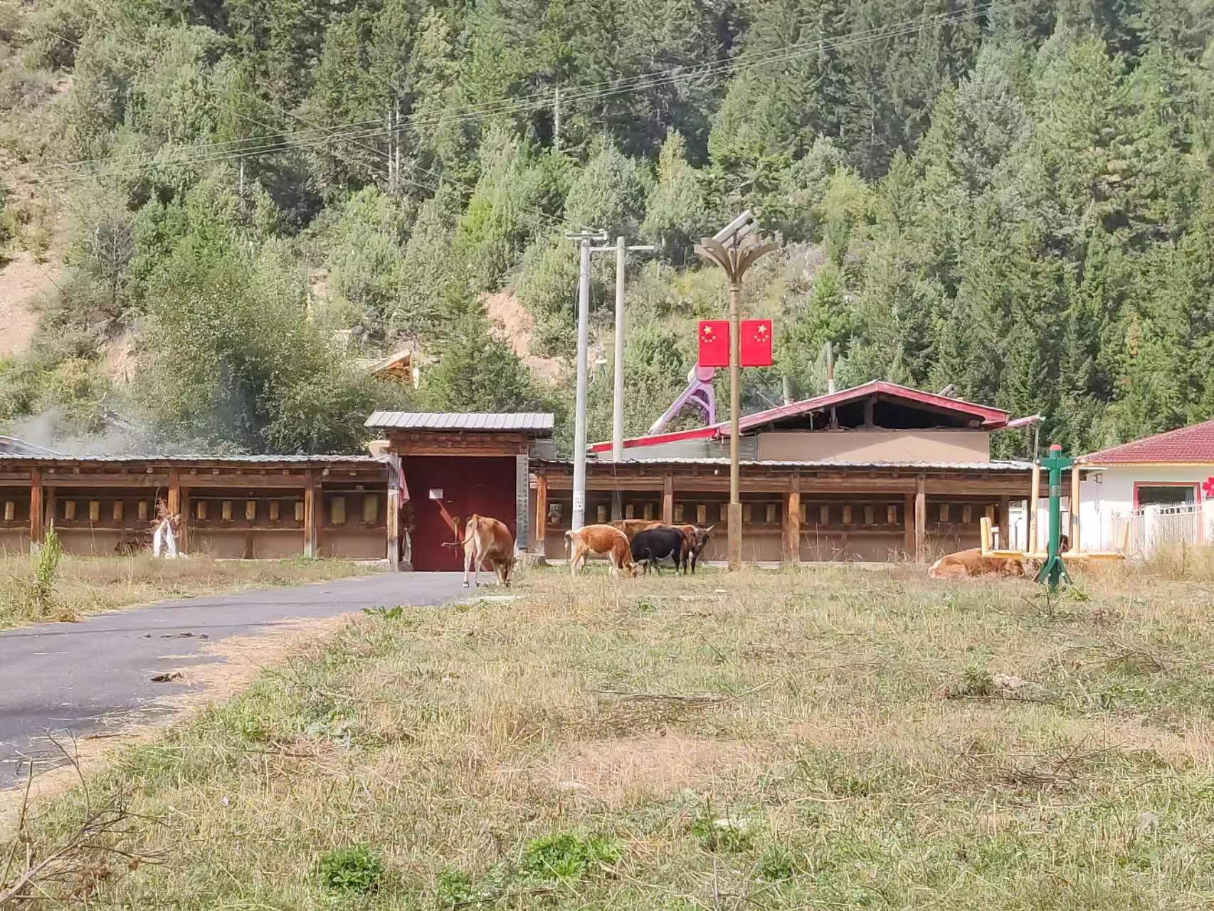 Indeed, the town was nothing more than a temple, a few houses, and a community center with a basketball court overgrown by weeds and commandeered by a herd of cows. But it was a welcome stopover point to rest for a few minutes before continuing on the treacherous mountain road to Jiuzhaigou.
