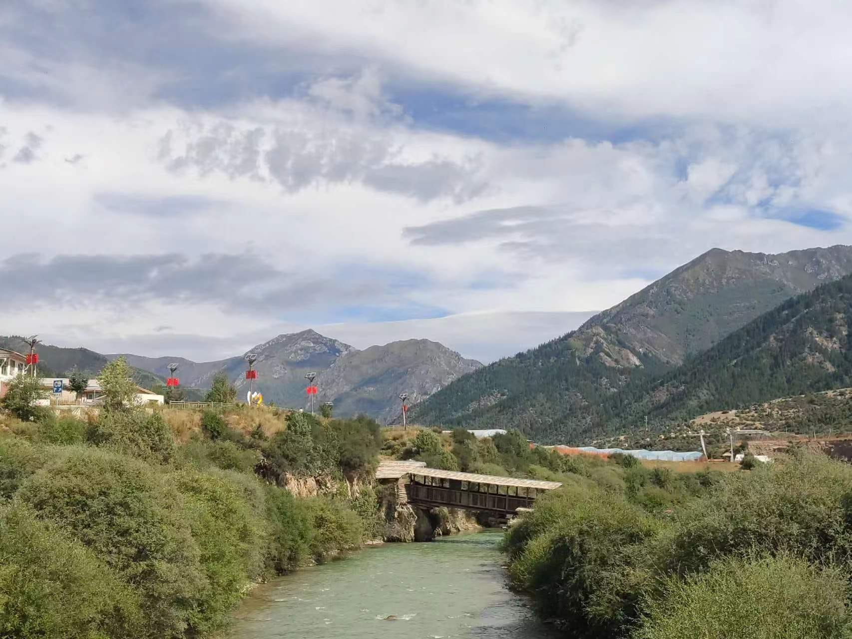 This Tibetan village nestled in the shadow of this hill had nothing but straight wilderness for 20km in either direction, but the road access was still maintained, for a grand total of 17 houses (I counted). Yet somehow they have electricity and road connections to the outside.