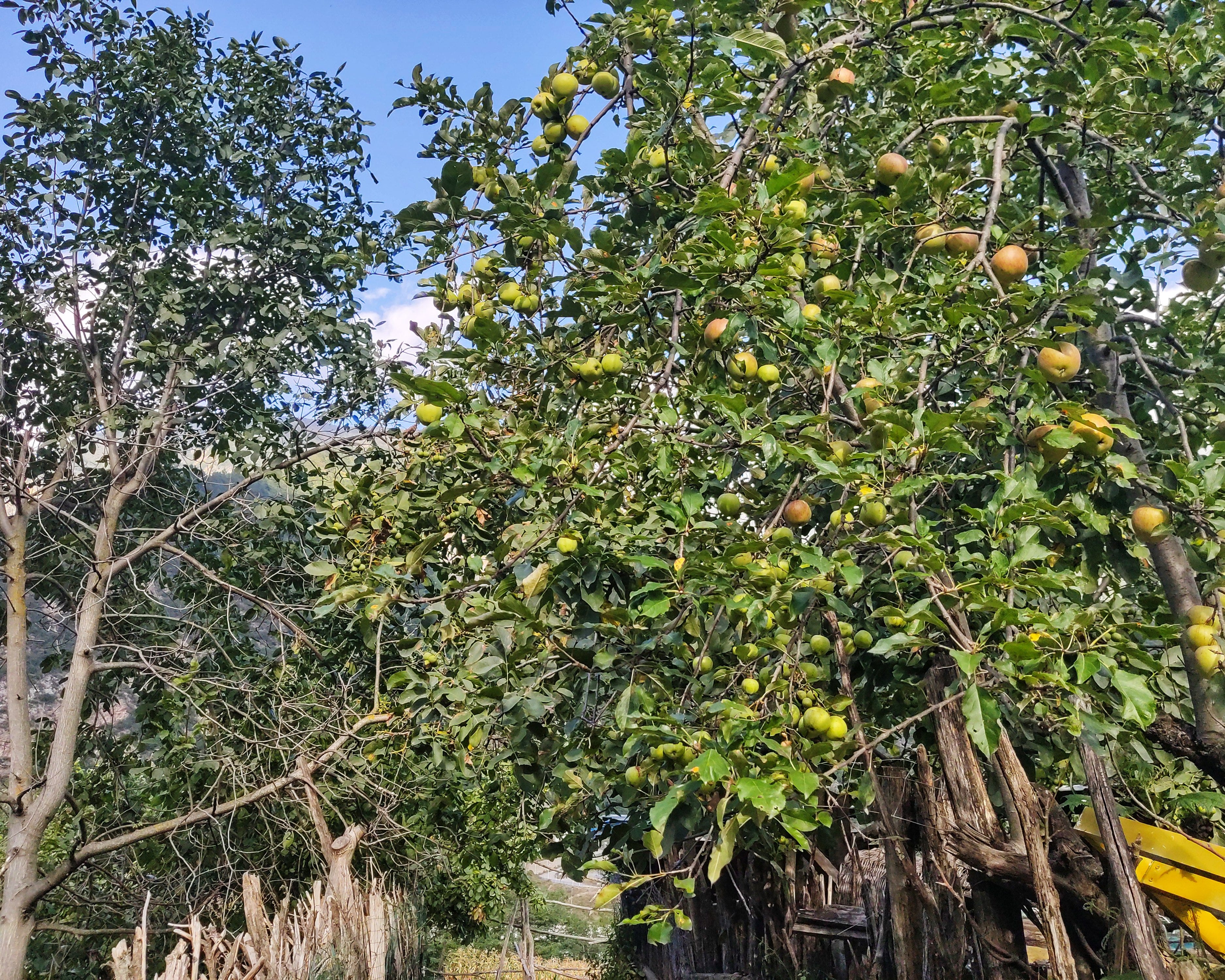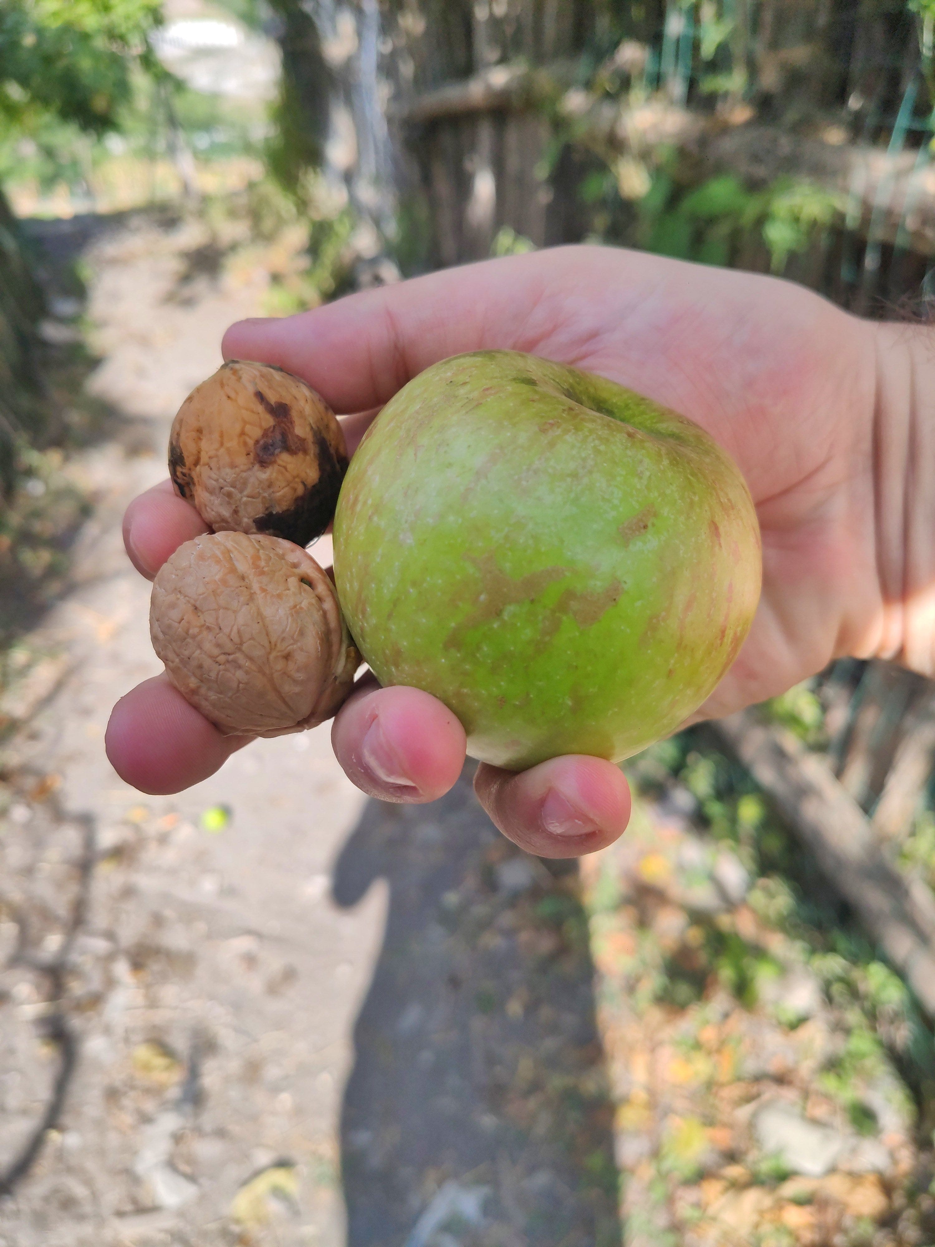 I offered my 1.85 meters to assist, and successfully snagged a few apples for everyone - and myself too. The guy chatting from earlier pressed something into my hand.