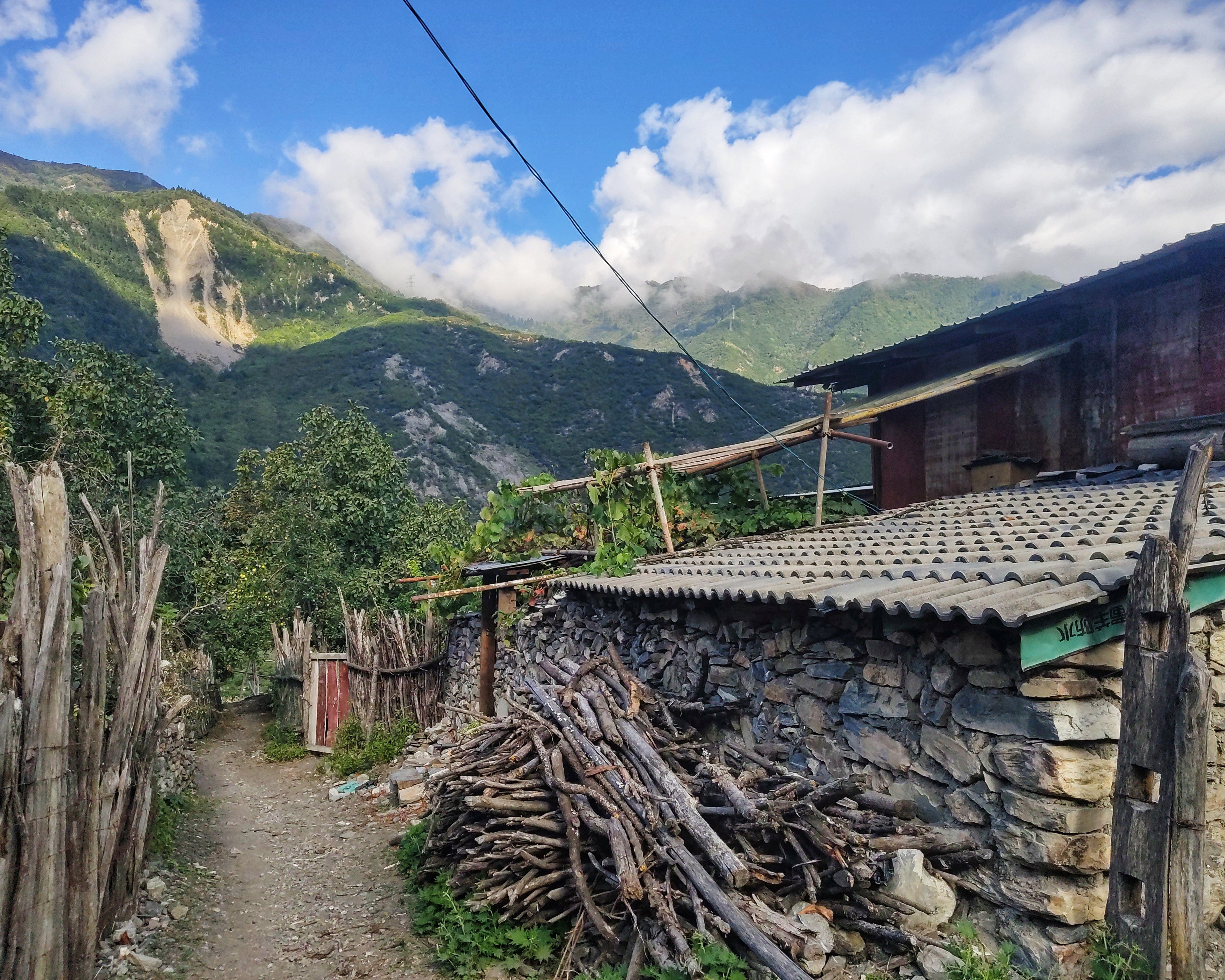 "Hey, there's a foreigner!" she called out. Like a cartoon sketch, three more heads popped up over the embankment to gawk at me as I passed, wheezing slightly, thanks to the 2000m of altitude). I smiled and waved at them, but kept moving Up ahead, I rounded a bend in the path and spotted weather-beaten grey houses.