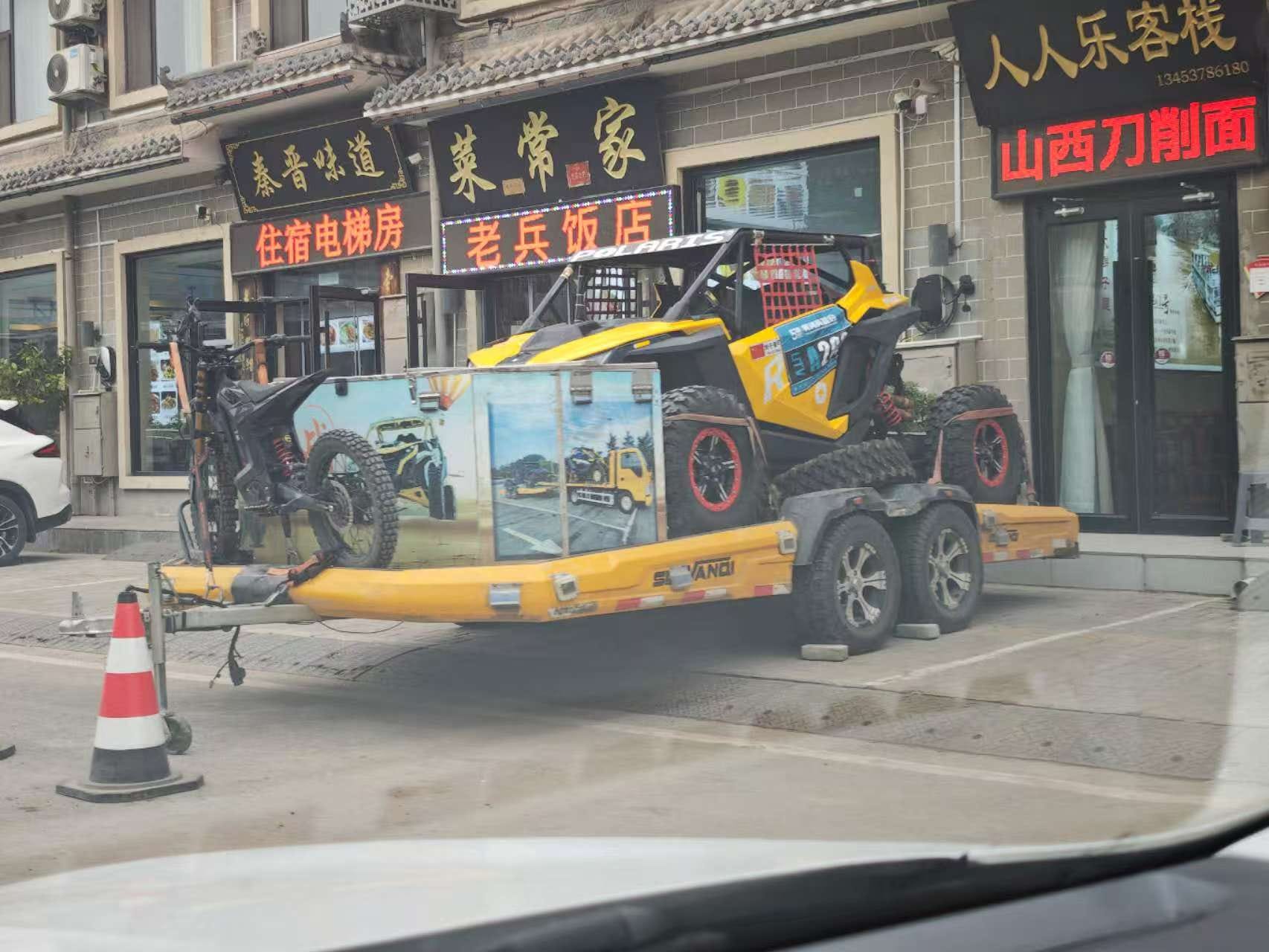 Emerging on the other side of the mountains in Ji County’s Hukou Town, the terrain dropped rapidly once again, descending into the Yellow River valley gorge. The sides of the road were stained black from coal falling off trucks, which I had seen before in Ordos, but the town was active and lively. I saw signs for the waterfall everywhere, but also posters advertising a major local event: the 6th Annual Linfen 520 Yellow River Heroes Challenge, an offroad rally racing event hosted in the town that had just kicked off. Hukou’s streets were clogged with modified off-road vehicles, both driving themselves and tugged on trailers.
